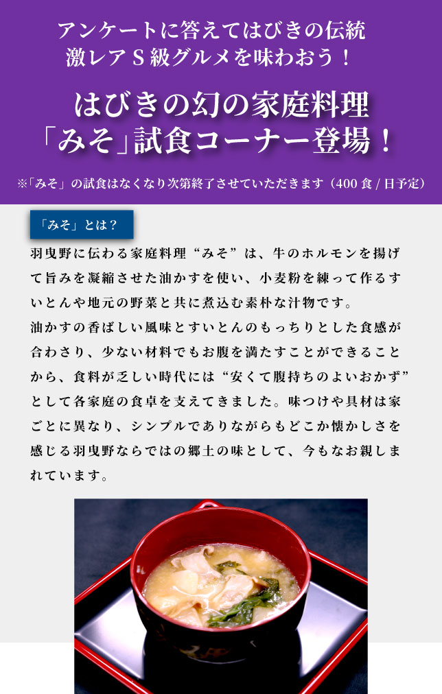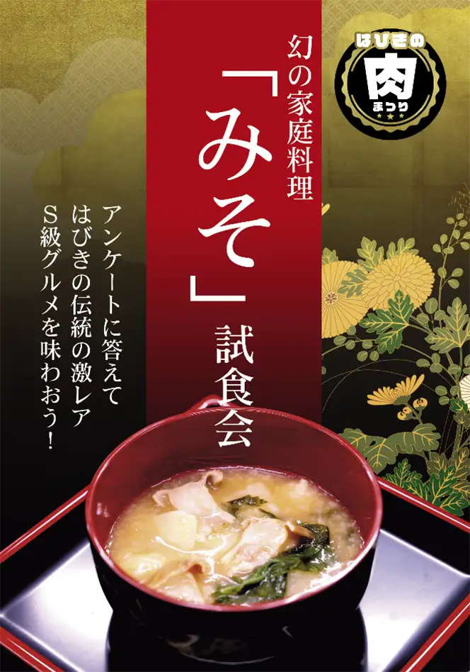 「黒毛和牛食べ比べコーナー」「みそ試食会」に加え、盛りだくさんのメニューをお楽しみください!